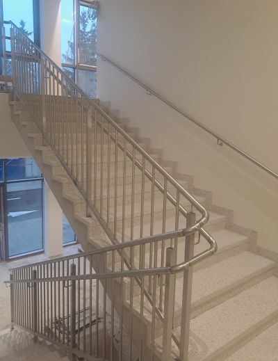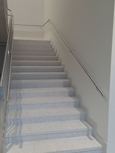 V závěru minulého roku jsme dodávali teracové obklady pro stavbu dvou centrálních schodišť v nemocnici ve městě Šiauliai v Litvě. Každé schodiště o šířce 1.500mm bylo obloženo teracovými schodnicemi v provedení nášlap + podstupnice ve vzoru TA 239. Podesty a mezipodesty byly následně provedeny v litém teracu.