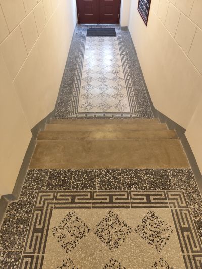 Jedním z nejčastějších materiálů pro podlahy v historických budovách – palácích, správních budovách, školách, nemocnicích, popřípadě později v obchodních prostorách a jinde – je takzvané teraco nebo teracová dlažba. Jedná se o dlouhodobě osvědčený materiál, jehož atraktivita je založena na pevnosti, odolnosti a kráse daných hlavní složkou – kamenem. Důležité je přitom také využití zkušeností s modelováním a opracováním konečné plochy.